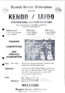 1989-01 Invitation to Kendo-Iaido summer camp – Danish Kendo Federation