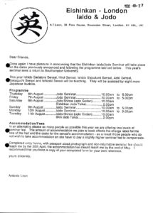 1992-04-27 Inbjudan till Eishinkan Iaido-Jodo seminar – Eishinkan London