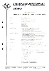 1994-03 Preliminary invitation to Nordic Kendo Championships 1994 – SBF Kendo