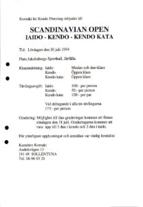 1994-05 Inbjudan till Scandinavian Open Iaido-Kendo-Kendo kata – Komaki Iai Kendo