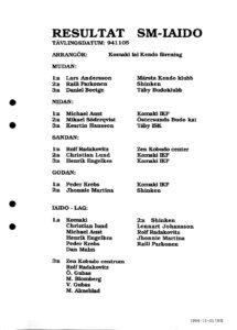 1994-11-05 Resultat SM i Iaido – Komaki Iai Kendo