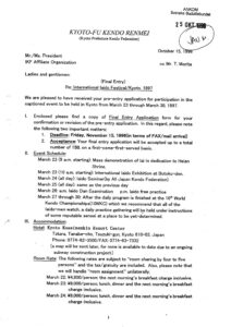 1996-10-15 Re Final entry international iaido festival Kyoto 1997 – Kyoto-fu Renmei