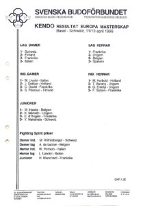 1998-05 Resultat EM i Kendo – SBF Kendo