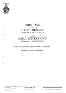 1998-09 Inbjudan till stecki och Kenjutsu träning – Stockholms Jodokai